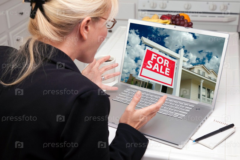 Взволнованная женщина на кухне с ноутбуком - покупка недвижимости