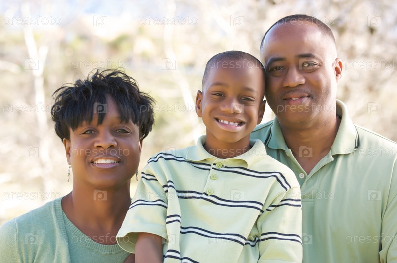 Привлекательные афроамериканские мужчина, женщина и ребенок