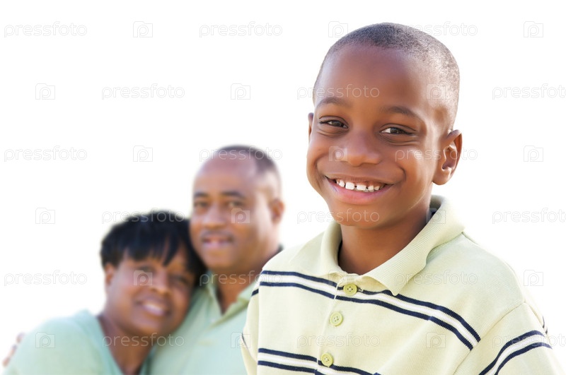 Красивый афро-американских мальчик с родителями