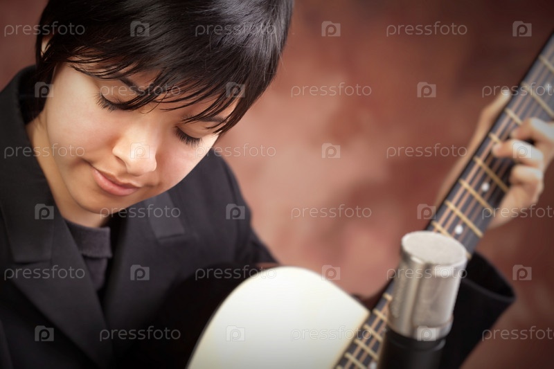 Привлекательная этническая девушка играет на гитаре