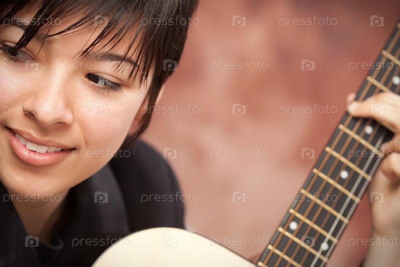 Привлекательная этническая девушка играет на гитаре