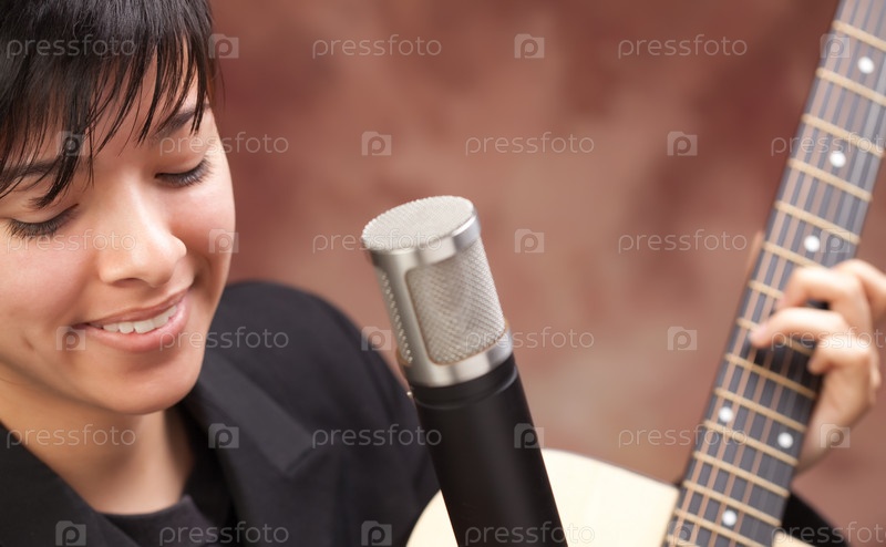 Привлекательная этническая девушка играет на гитаре
