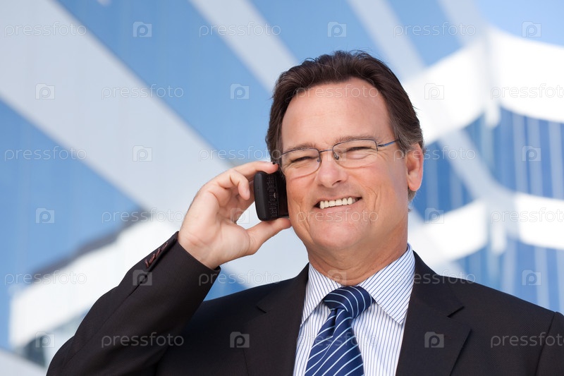 Красивый уверенный бизнесмен говорит по сотовому телефону