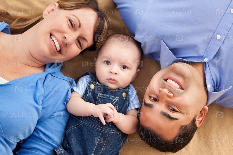 Семья смешанного происхождения играет на одеяле