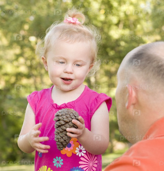 Мужчина с дочерью, держащей шашку в руке, в парке