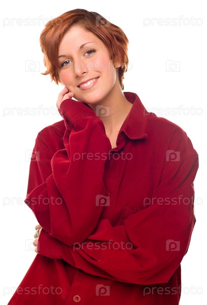 Привлекательная рыжеволосая девушка в теплой бархатной рубашке