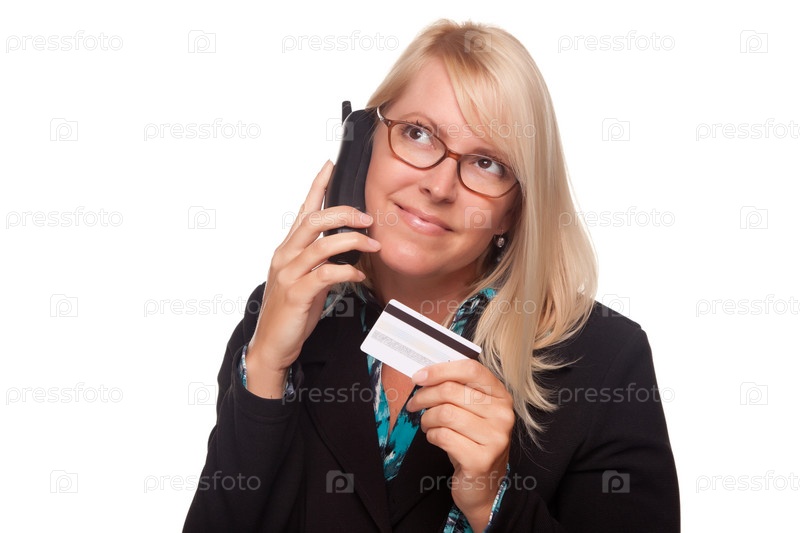 Красивая блондинка с телефоном и кредитной картой