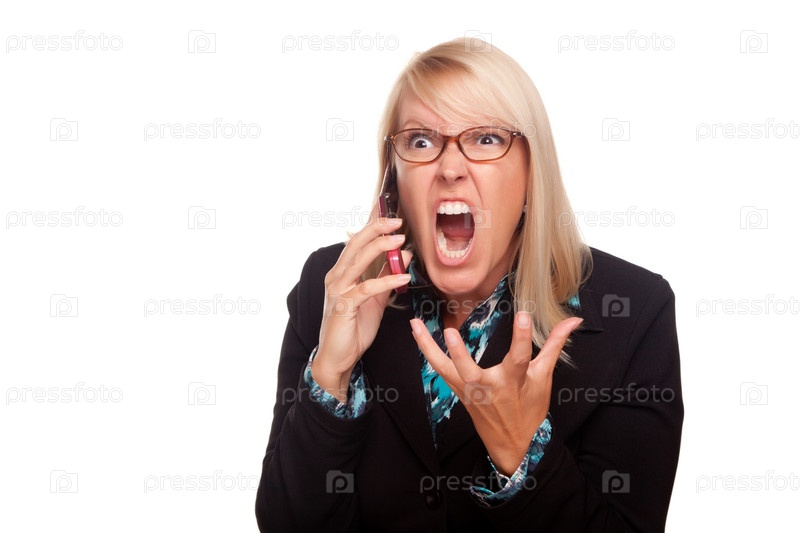 Сердитая женщина кричит во время разговора по мобильному телефону