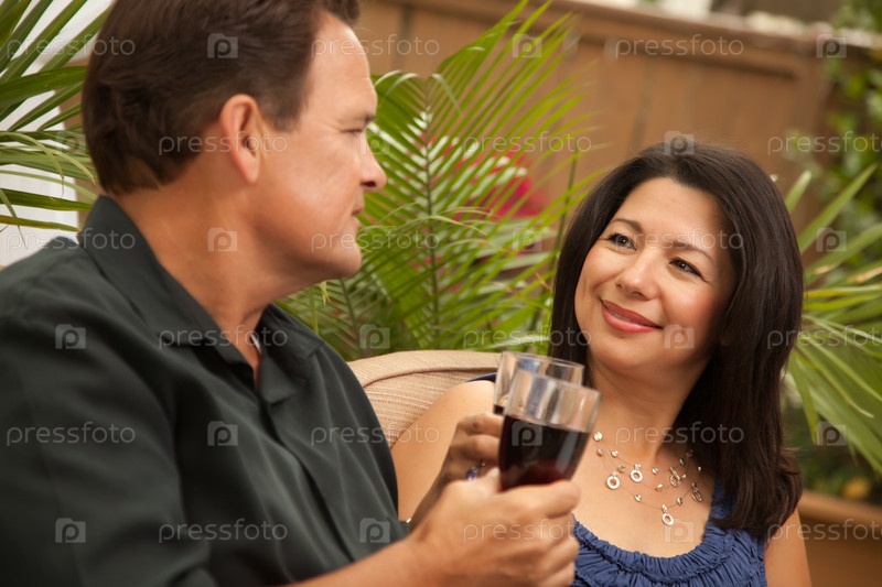 Привлекательная латиноамериканская женщина и мужчина-европеец пьют вино