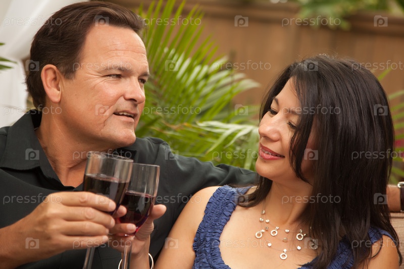 Привлекательная латиноамериканская женщина и мужчина-европеец пьют вино