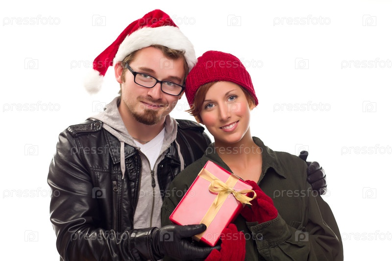 Молодая пара с праздничным подарком