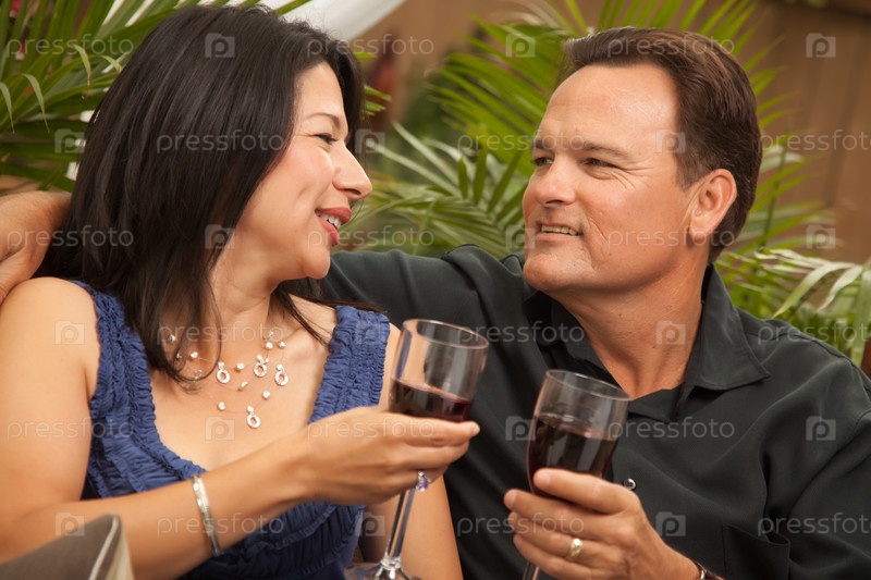 Привлекательная латиноамериканская женщина и мужчина-европеец пьют вино