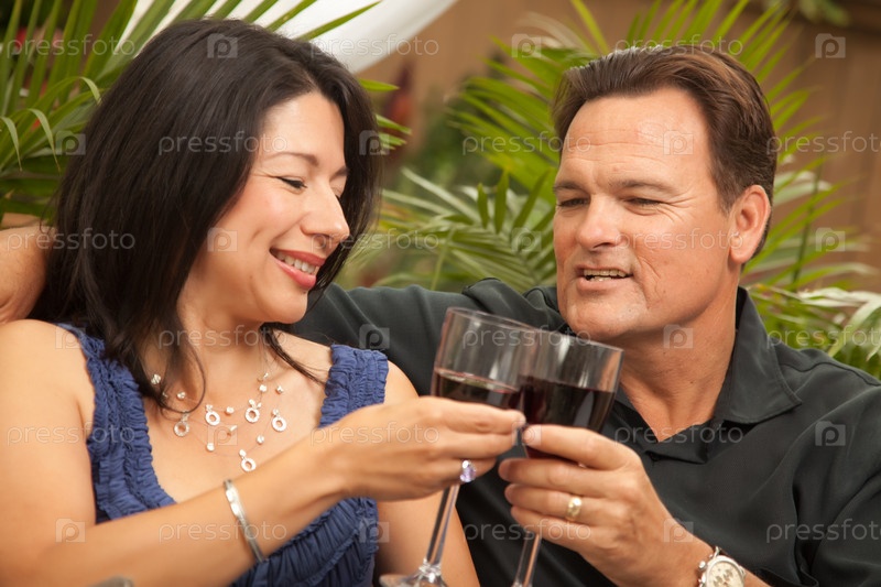 Привлекательная латиноамериканская женщина и мужчина-европеец пьют вино
