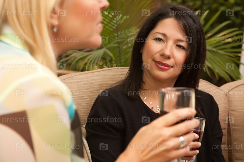 Две подруги наслаждаются вином на крыльце