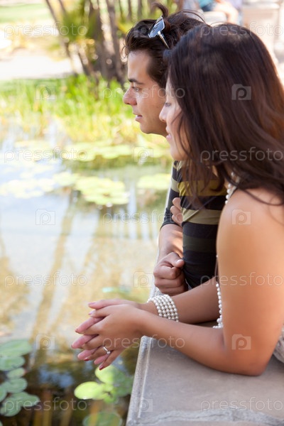 Привлекательная латиноамериканская пара на берегу пруда