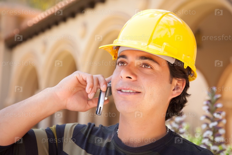 Красивый латиноамериканский подрядчик в каске
