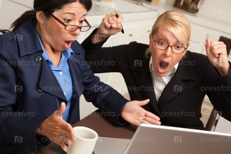 Деловые женщины празднуют успех перед ноутбуком