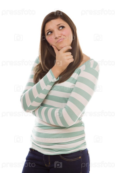 Задумчивая этническая девушка с рукой на подбородке