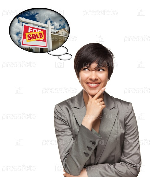 Женщина смешанного происхождения с мыслью о продаже недвижимости