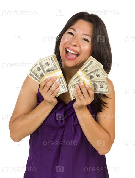 Радостная этническая женщина, держащая сотни долларов