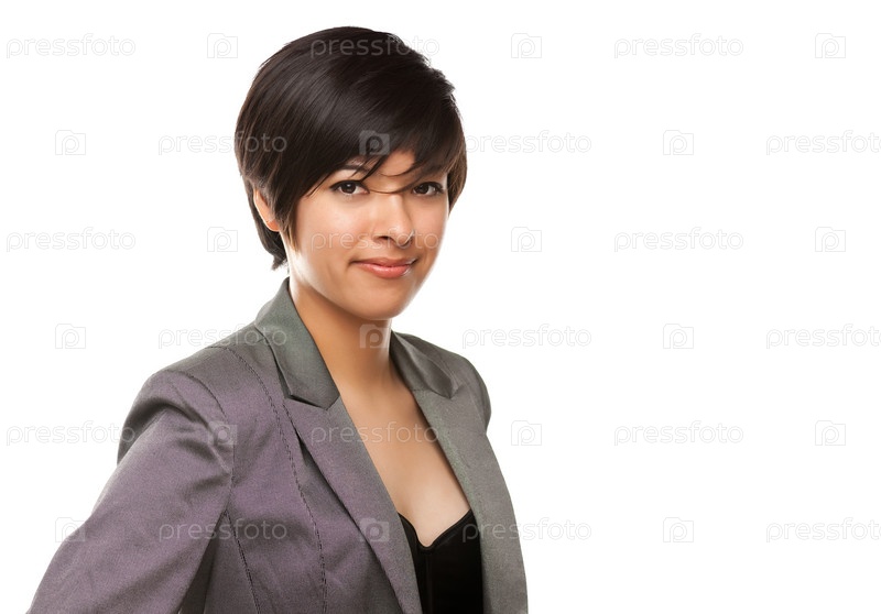 Привлекательная улыбающаяся этническая женщина на белом фоне