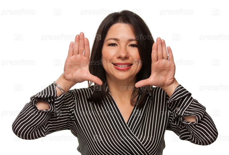 Привлекательная этническая женщина, держащая руки у лица
