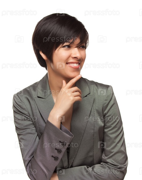Улыбающаяся девушка смешанного происхождения на белом фоне