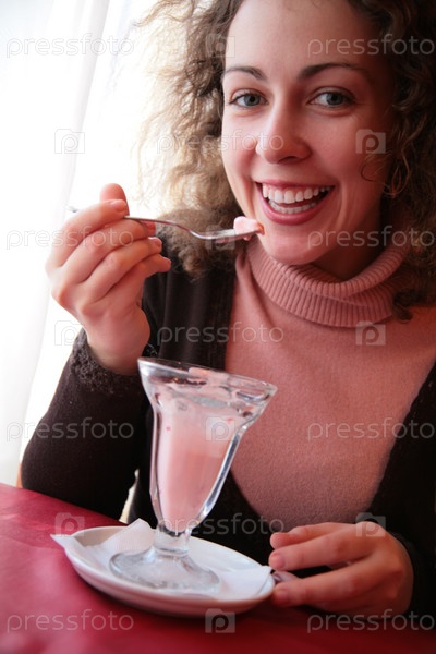 Молодая женщина ест десерт