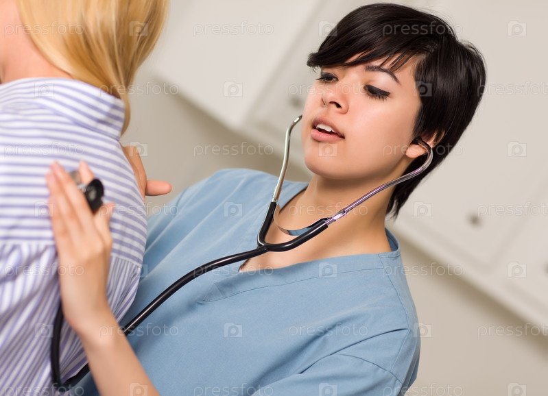 Привлекательная молодая женщина-врач смешанного происхождения со стетоскопом