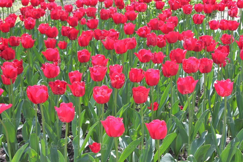 Много красных тюльпанов