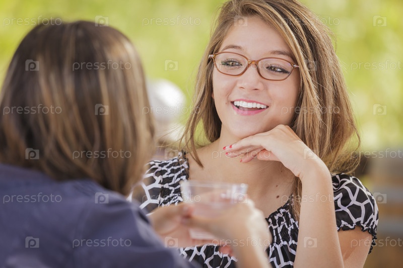 Привлекательные подруги смешанного происхождения болтают за напитками