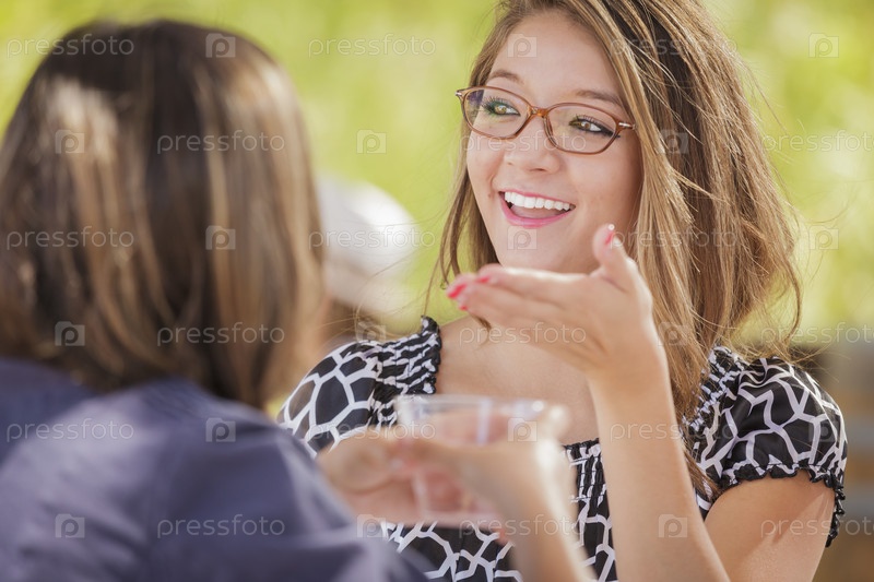 Привлекательные подруги смешанного происхождения болтают за напитками