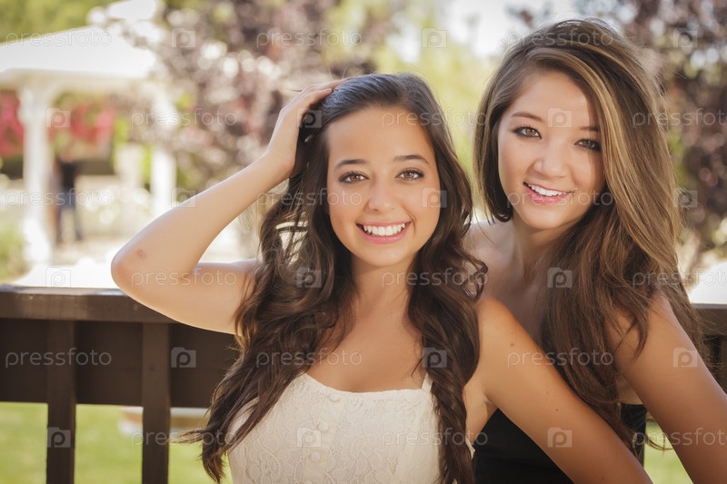 Привлекательные подруги смешанного происхождения на свежем воздухе