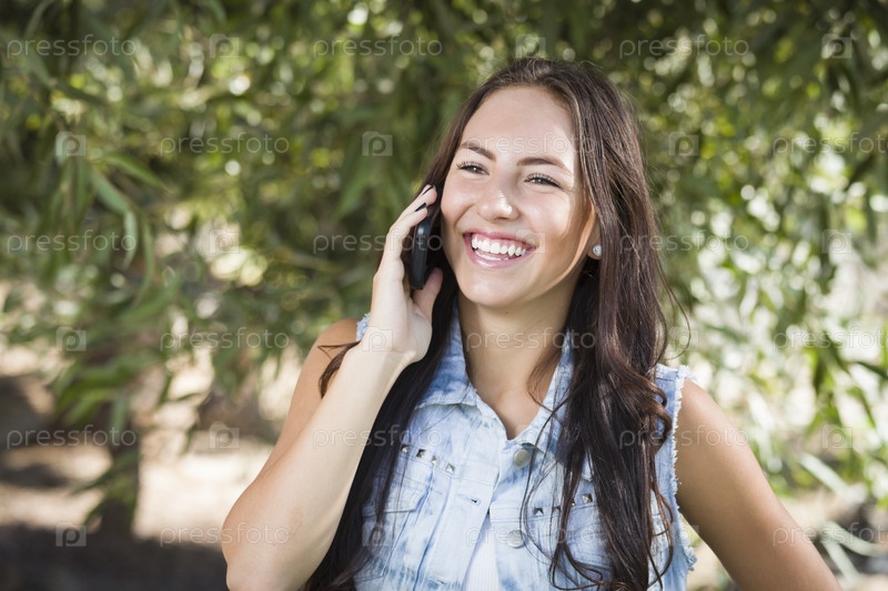 Молодая женщина смешанного происхождения разговаривает по мобильному телефону