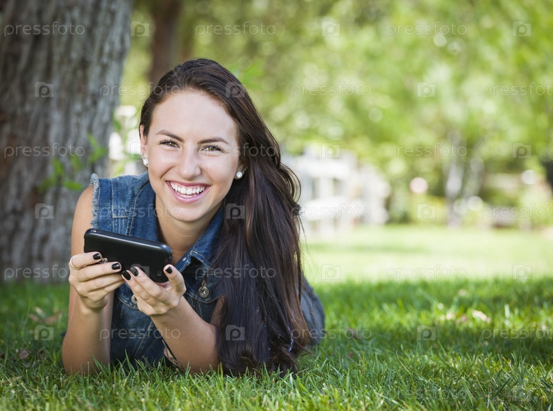 Привлекательная девушка смешанного происхождения пишет сообщение на мобильном телефоне