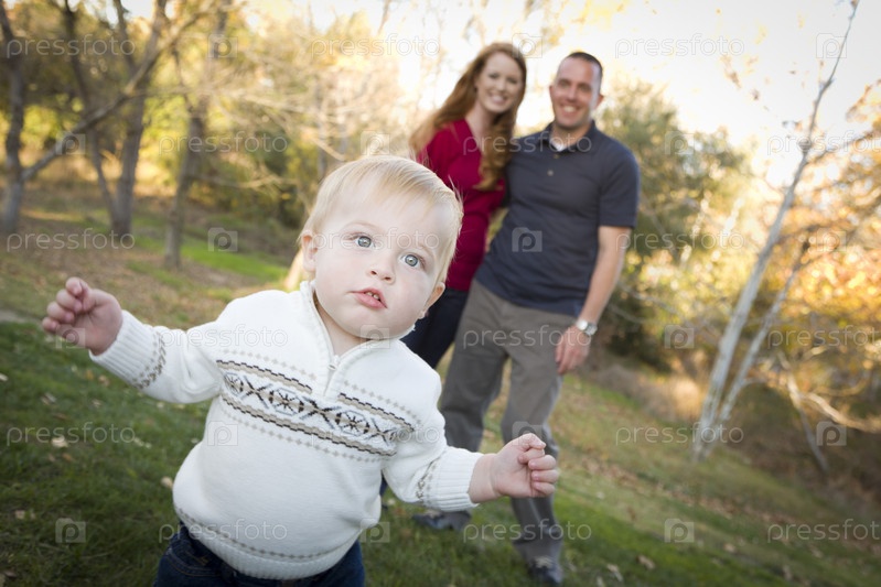 Молодые привлекательные родители с ребенком
