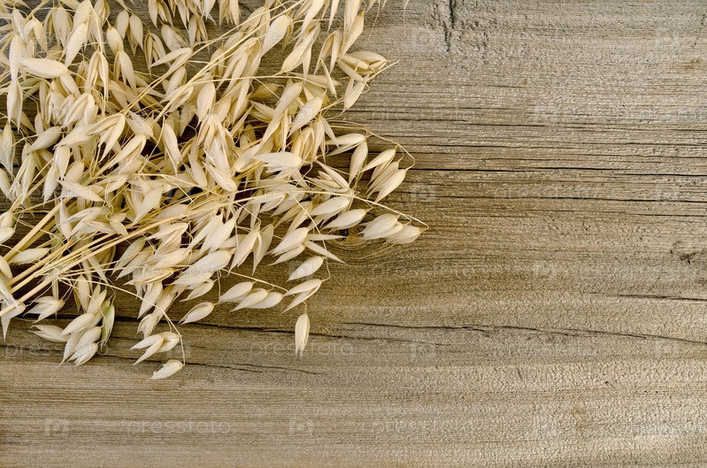 Стебли овса на старой деревянной доске