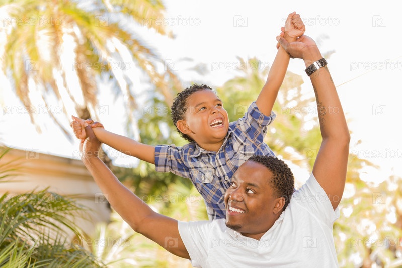 Сын сидит на плечах у отца