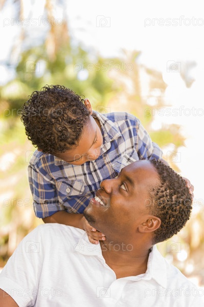 Сын сидит на плечах у отца