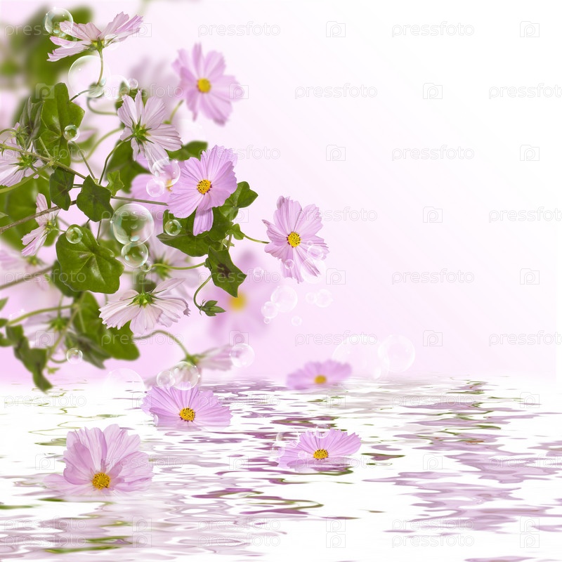 Розовые декоративные цветы на абстрактном фоне воды