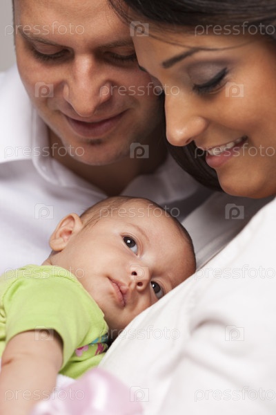 Молодая пара с новорожденным ребенком