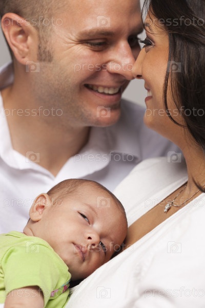 Молодая пара с новорожденным ребенком