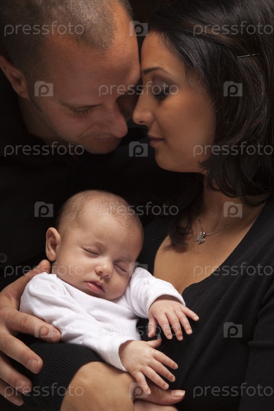 Молодая пара с новорожденным ребенком