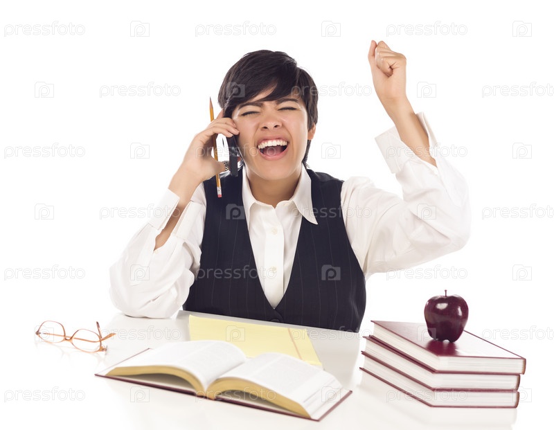 Радостная студентка говорит по сотовому телефону