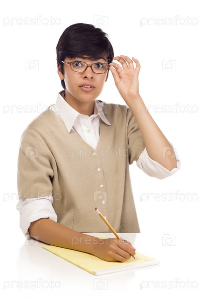 Привлекательная студентка за столом