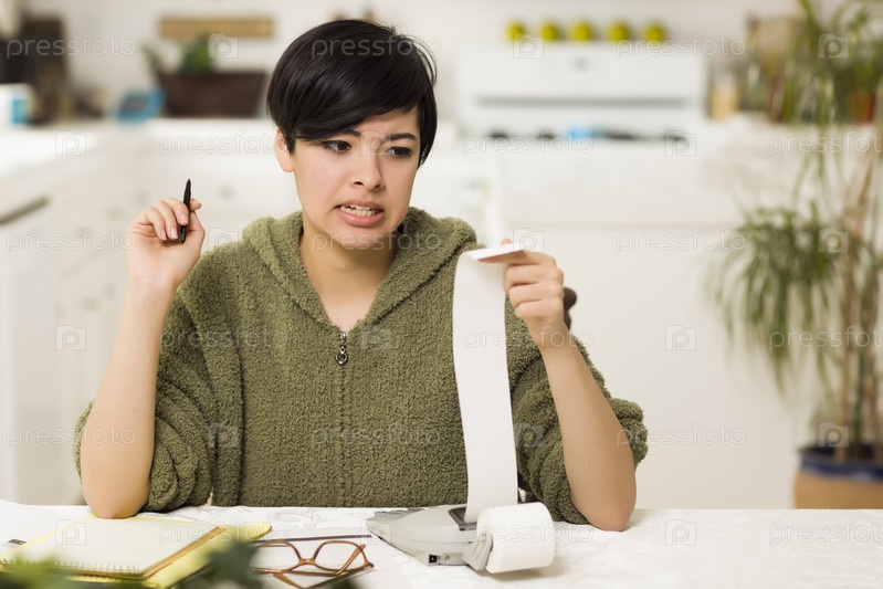 Молодая женщина бьется над финансовым отчетом