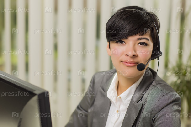 Привлекательная улыбающаяся женщина в гарнитуре
