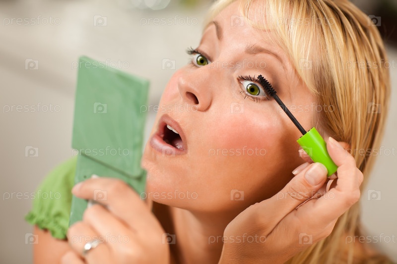 Блондинка наносит тушь
