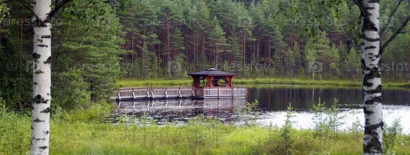 Пагода в азиатском стиле на озере в лесу