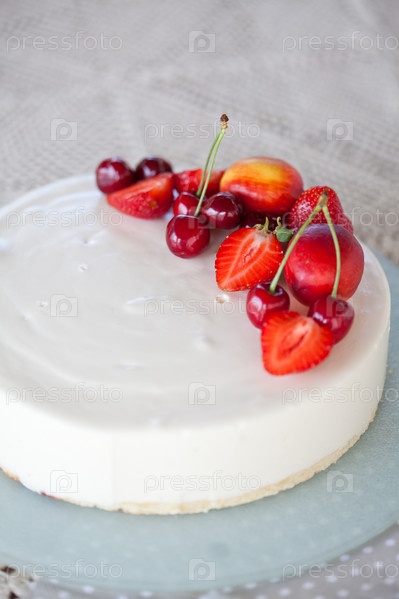 Белый торт-мороженое с фруктами